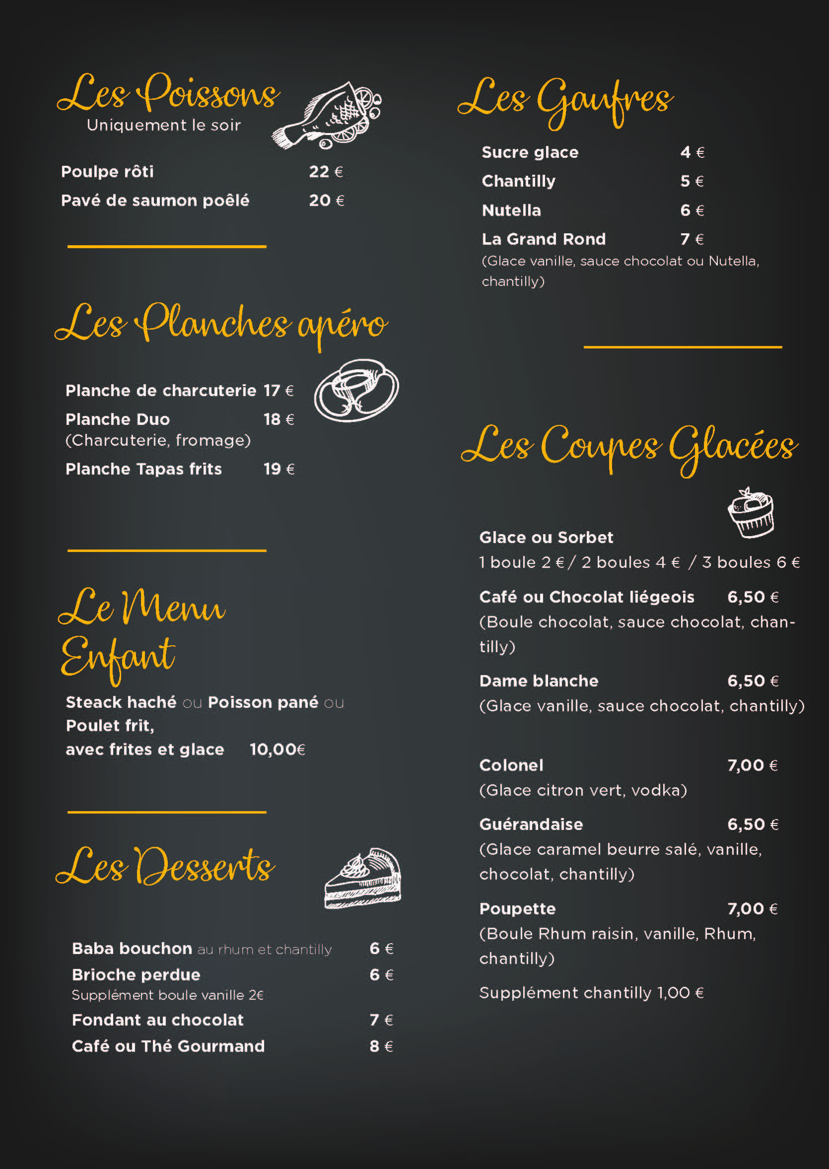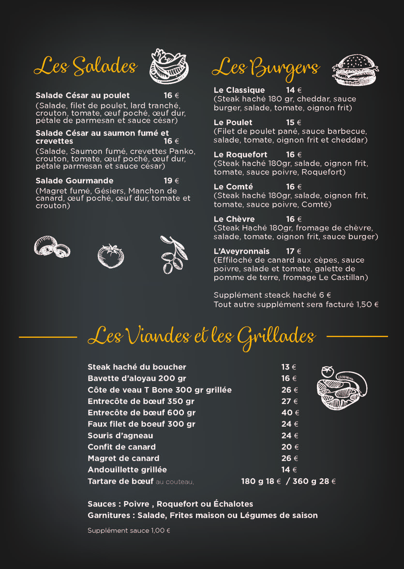 Notre menu propose une variété de plats classiques de brasserie, allant des incontournables comme le steak frites et le croque-monsieur, aux plats de saison innovants préparés avec les ingrédients les plus frais du marché.